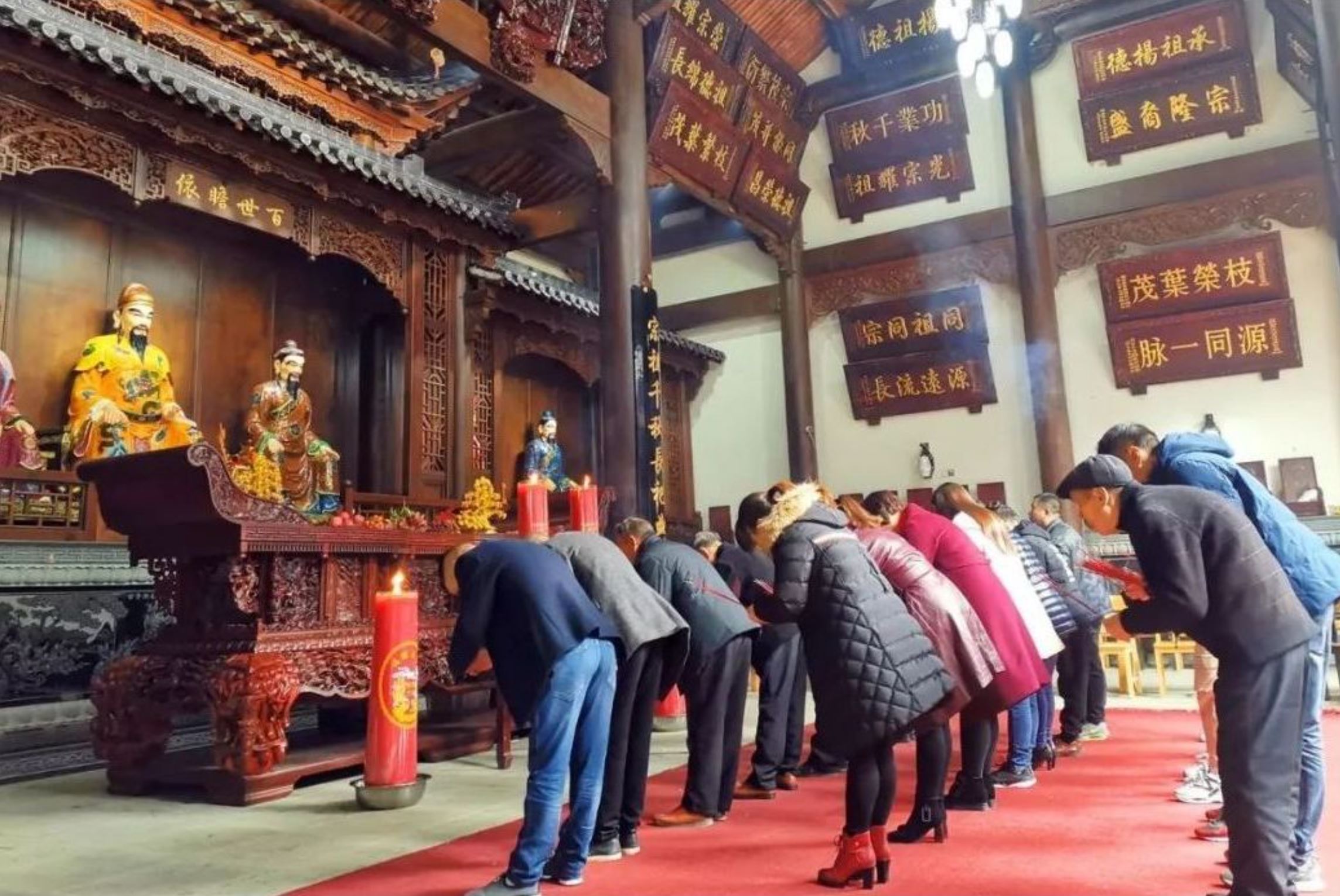 ‌  4. 行礼‌:全体参与者向先人遗像、牌位或祖先轴等鞠躬致敬。